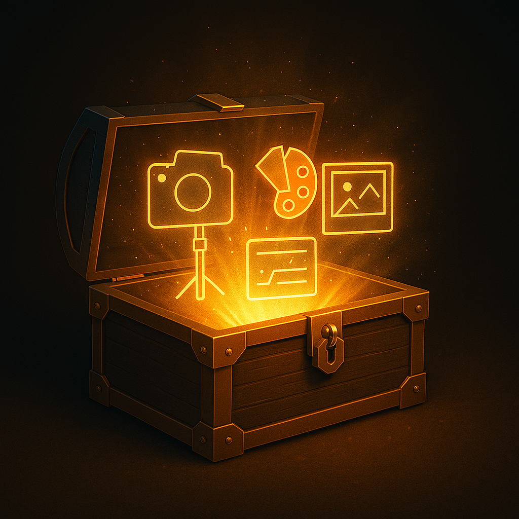 All-in-one digital photography suite containing presets, LUTs, retouching tools, studio backgrounds, the lighting eBook, and the AI composition analyzer.